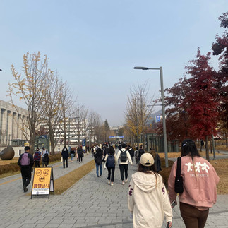 I loved every second of being a student at Yonsei University. It is such an incredible school that is so beautiful and really immerses you into higher learning in another country. I took many classes pertaining to Korean music, art, history, philosophy, business & communications, ect. I lived off of campus, which I would definitely recommend doing if you can, it separates your school life and your full experience and my friends that lived on campus wished they could've lived off campus. That being said I enjoyed my daily walks to school, which I've never been able to do before. Here are a few pictures of campus during daily life, as well as a beautiful study café view, and group projects where we learned extensively about Korean culture by first-hand experience!